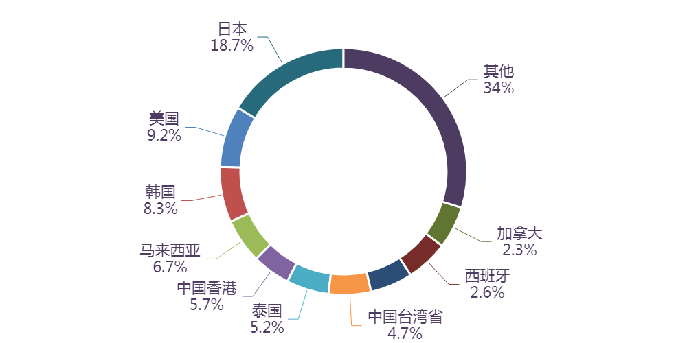 前7个月,日本是我国水海产品及制品出口最主要的市场,出口额为21.5亿美元,同比增长5.1%。7月当月,出口额为3.3亿美元,同比增长5.9%。