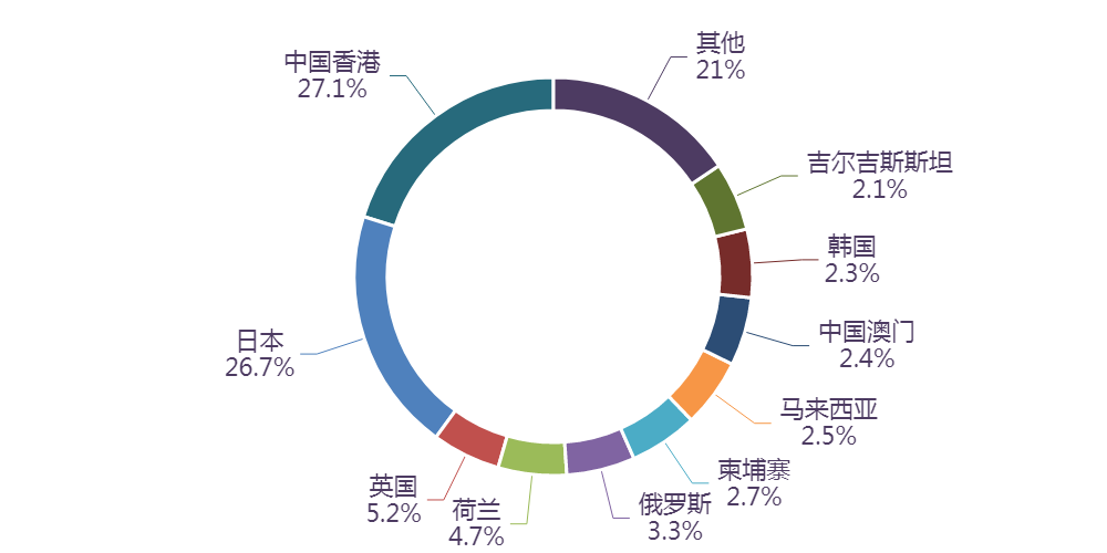 2025年前7月我国水海产品及制品TOP10出口目的地