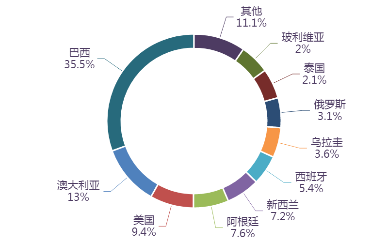 市场方面,前7个月,我国肉类及制品进口额排名前十的国家/地区分别为巴西、澳大利亚、美国、阿根廷、新西兰、西班牙、乌拉圭、俄罗斯、泰国、玻利维亚,合计占我国该产品进口额的88.9%。