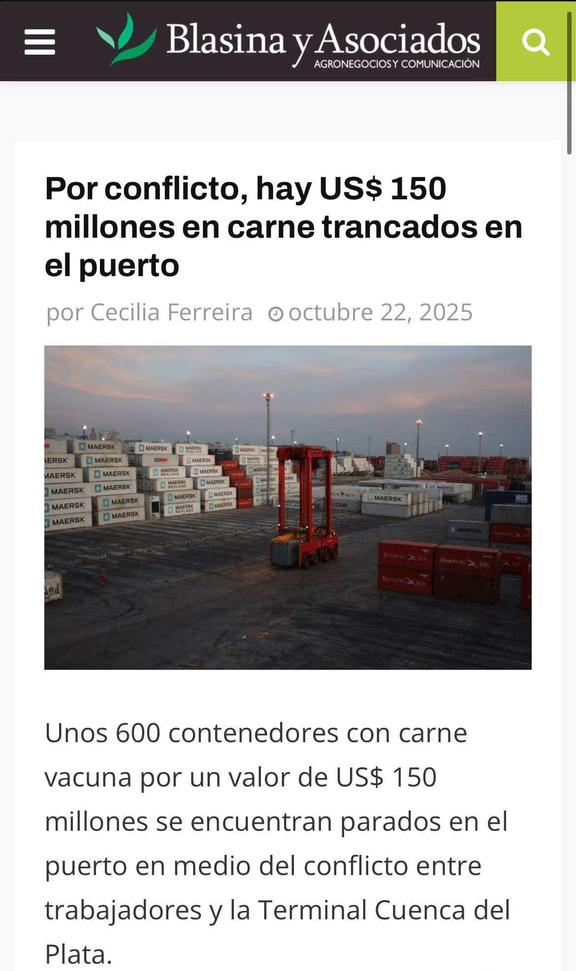 乌拉圭制冷工业协会主席丹尼尔·贝拉蒂把矛头直指“垄断式码头”:单箱费用比邻河布宜诺斯艾利斯贵一半,比巴西高六成,更甩出美洲三十四国平均一大截。“我们被高成本绑架,如今又被不确定性掐住喉咙。”他在电台访谈里警告,若冰鲜柜再拖延,加工厂将连环违约,银行抽贷,整条产业链或被拖垮。劳工部本周已紧急撮合工会与银河流域终端公司(TCP)坐回谈判桌,但截至发稿,罢工阴影仍未散去。