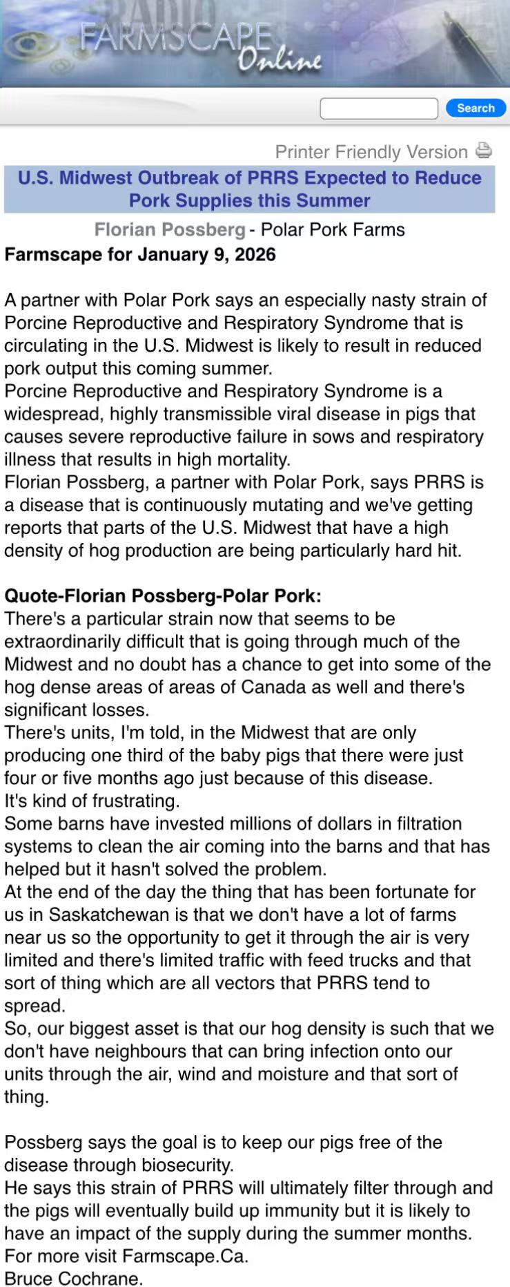 美国中西部正遭遇高致病性猪蓝耳病(PRRS)疫情,一种传播力强、难以控制的毒株在当地密集养殖区蔓延,导致部分猪场产仔量大幅下降,预计将影响今年夏季的猪肉供应。
