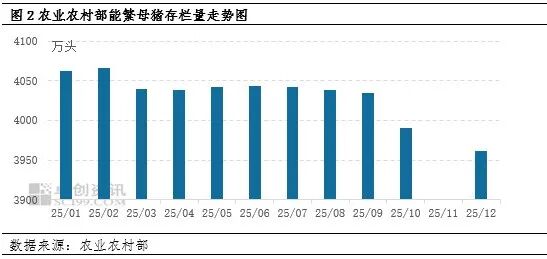 2025年白条猪肉价格震荡回落后小幅上涨,10月份价格创新低后小幅反弹,11月呈现缓跌状态,年底价格再度上涨,且持续至2026年1月份。这主要是由于母猪产能去化,生猪及猪肉供应减少导致。2月份猪肉市场供需双减,或支撑2月价格环比上涨。