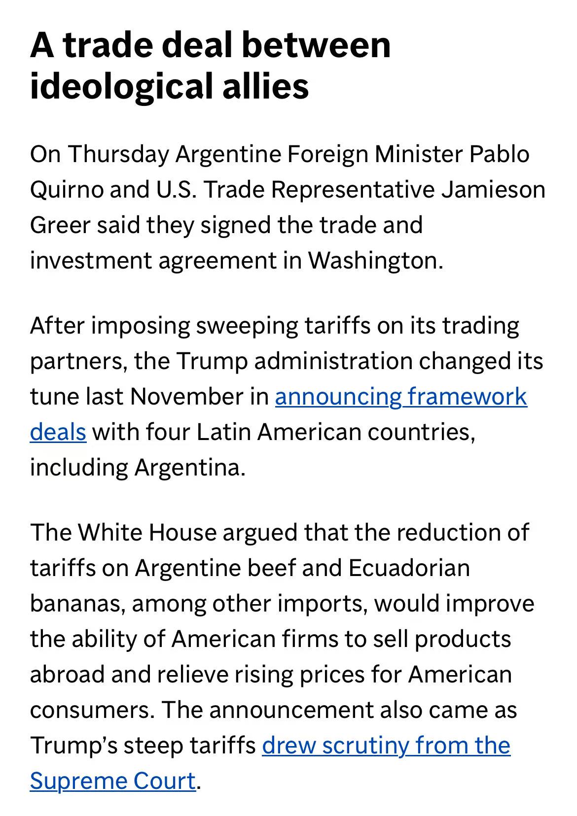 协议同时反映出双方在政治与战略层面的靠拢。米莱上任后多次访美,两国在多项政策上协调一致。尽管协议细节与实施时间表尚未完全公布,但对阿根廷畜牧业与整体经济而言,这项贸易突破无疑是一次历史性机遇。