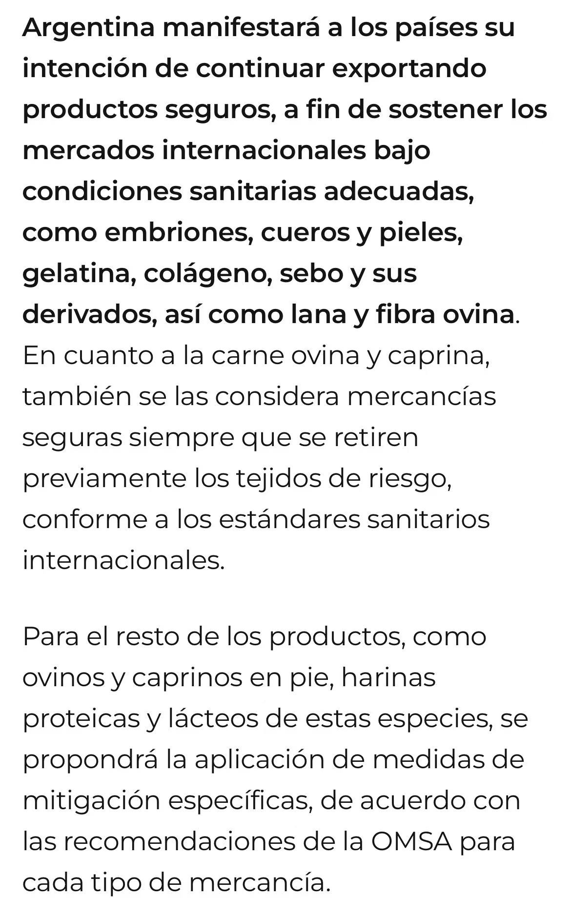 出口方面,Senasa将无法再签发带有“无痒病”条件的卫生证书。羊肉、活羊、乳制品等出口面临限制,但去骨肉、皮革、明胶、羊毛等经风险处理后可继续出口。该病不传染人类,也不影响牛。