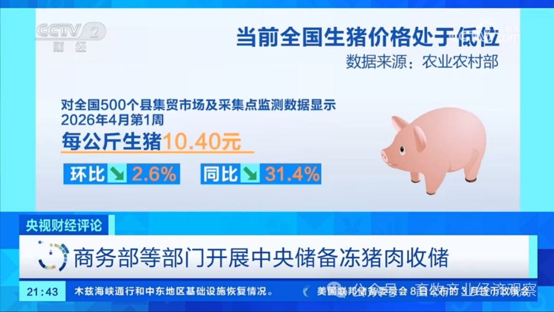 当全国瘦肉型生猪交易均价跌到每公斤9.36元,而行业平均完全成本还在每公斤13 到14元的时候,每一头出栏的生猪,都在给养殖户的账本上添上一笔亏损。这不是短期的波动,而是持续了近两个月的下行,截至3月底,生猪价格已经连续八周下跌,创下了七年多以来的最低点。这场席卷全行业的亏损潮,到底因何而起?和我们经历过的那些猪周期相比,这一次又有什么不一样?央视财经评论邀请中国农业科学院北京畜牧兽医研究所研究员朱增勇与财经评论员马亮,共同拆解当前生猪市场的真实图景。