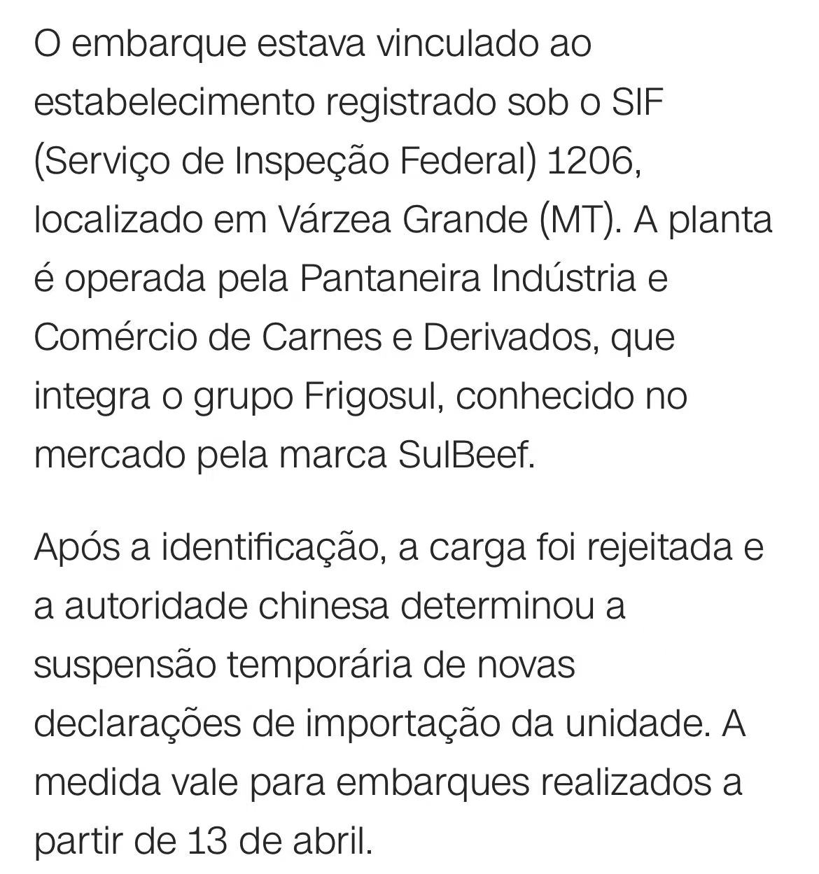 该厂位于马托格罗索州,由Frigosul集团运营(品牌SulBeef),旗下另有三家工厂仍在正常对华出口。巴西驻北京农业参赞指出,近期巴西牛肉输华药残不合规案例显著增加,“可能超越个案,接近系统性问题的范畴”。巴西肉类出口商协会(Abiec)表示,正与农业部跟进此事,措施具有临时性和预防性。