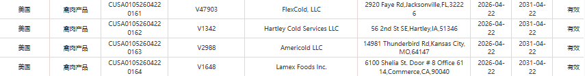 2.新增美国4家禽肉企业(注册编码为:V47903、V1342、V2988、V1648)自2026年4月22日(含)后生产的输华产品进口准入。