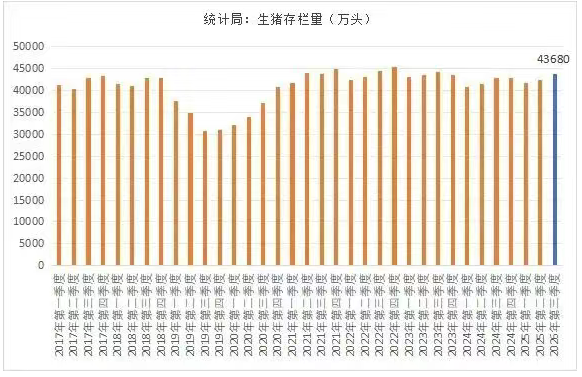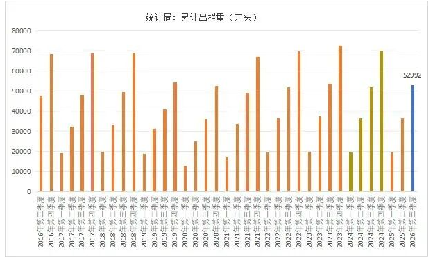 三、三季度末,全国生猪存栏43680万头,同比增加986万头,增长2.3%,环比增加1233万头,增长2.9%。