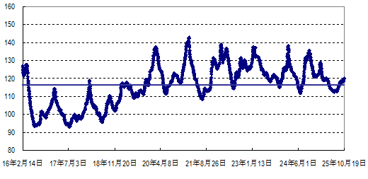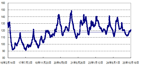 据农业农村部监测,2025年第42周(2025年10月13日—19日,下同)“农产品批发价格200指数”为119.35(以2015年为100),比前一周升0.84个点,同比低10.69个点;“‘菜篮子’产品批发价格指数”为120.37(以2015年为100),比前一周升0.98个点,同比低12.28个点。