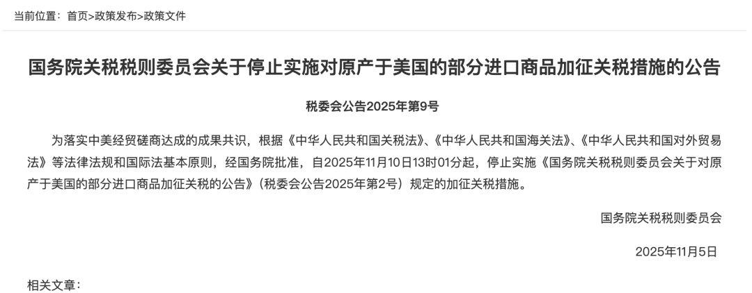 国务院关税税则委员会 | 2025-11-05