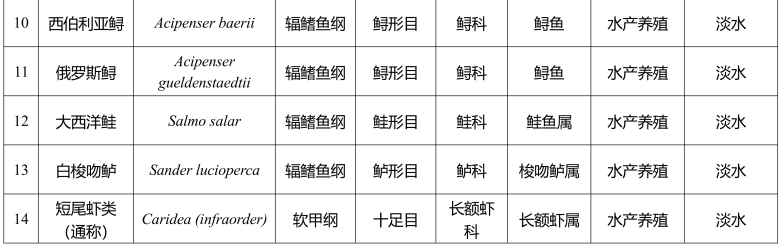 注:经双方通过正式信函确认,该表中的养殖水产品种类可以增加或删除。目录变更后,不再另行发布公告,以海关总署公布的《符合评估审查要求及有传统贸易的国家或地区输华食品目录》为准。