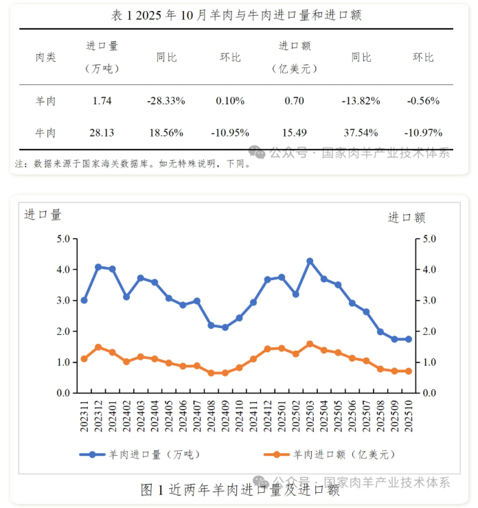 下面对2025年10月中国羊肉及活羊的进出口的情况进行总结。