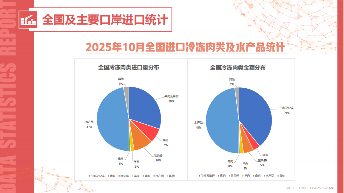 全国进口冷冻肉类及水产品统计