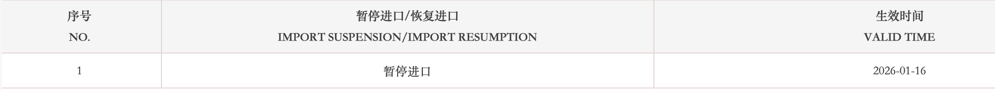 暂停受理俄罗斯1家禽肉企业(注册编码为:RU-013/LP30932)自2026年1月16日(含)起启运的输华产品进口申报。