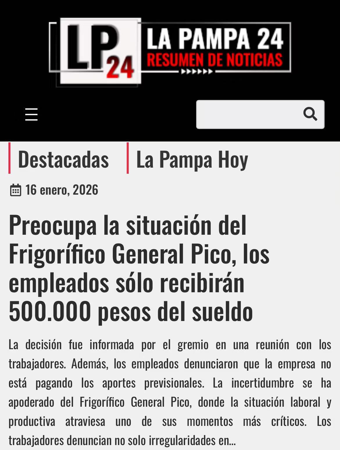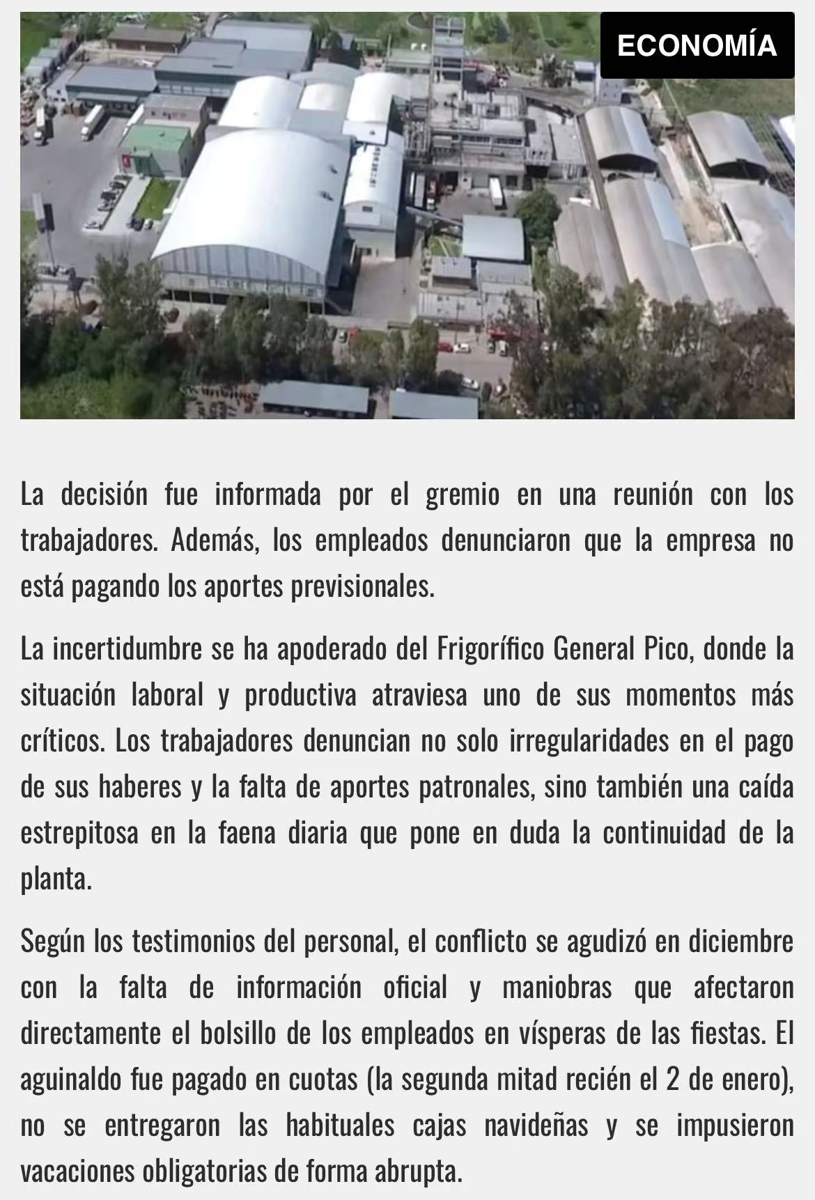 拉潘帕省 General Pico 市的 Frigorífico General Pico S.A.(厂号 2531/2792)正处风暴眼:屠宰量从日常 500-600 头暴跌至约 50 头,且主要为代加工订单;工资发放不规范,年终奖金被拆分、圣诞礼盒取消;更严峻的是,员工在 ARCA 系统查询发现,医保、养老金等记录出现连续“空白”(未申报)或“黄标”(欠缴)。