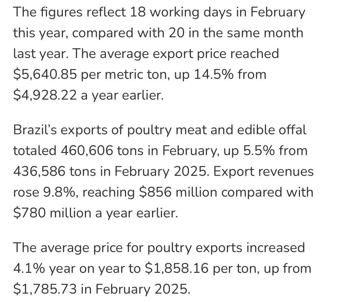 值得注意的是,2月只有18个工作日,比去年同期的20天还少2天,但出口量仍创下历史同期新高。