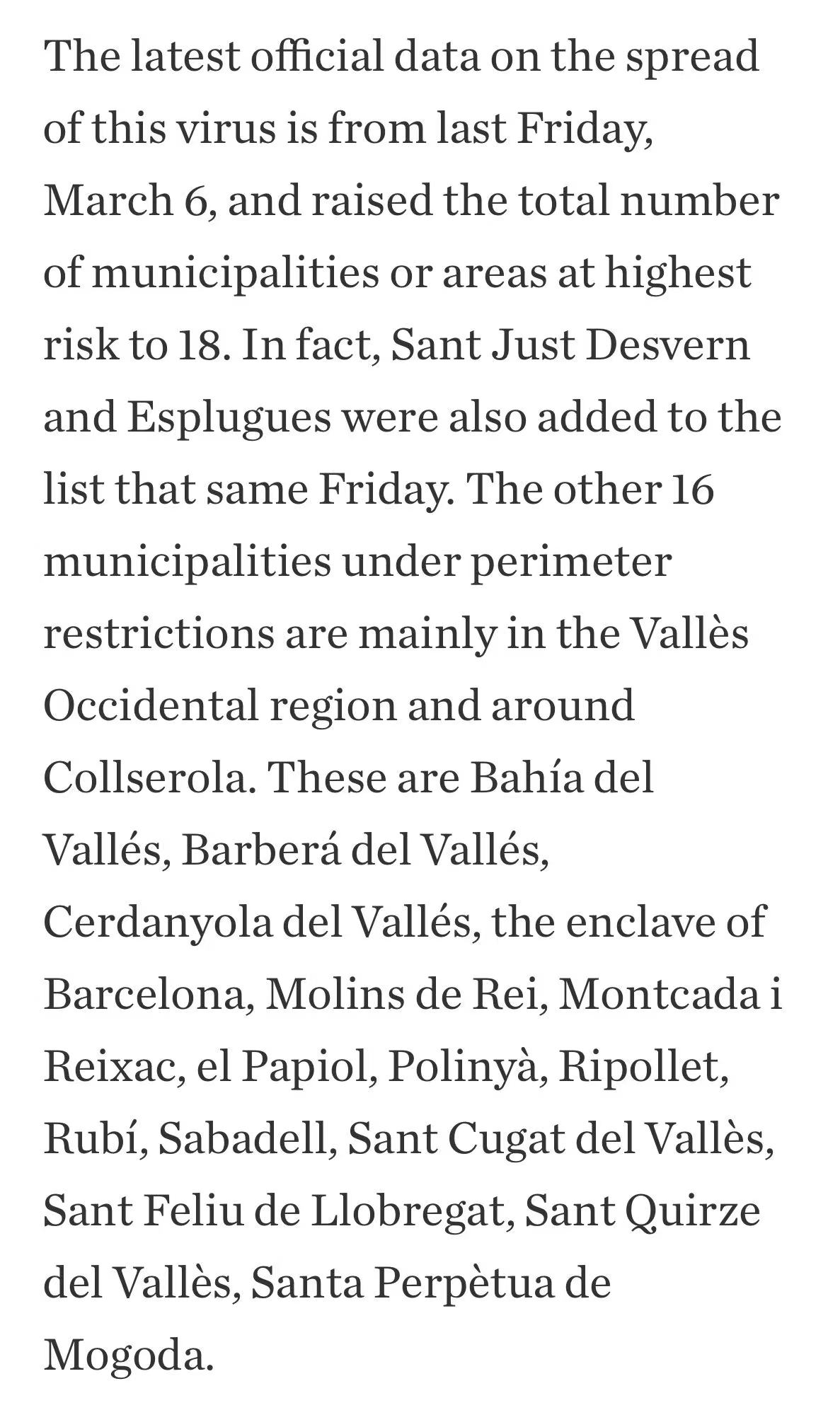 当局宣布自本周四起对科尔塞罗拉自然公园实施永久性完全封闭,禁止从任何市镇进入山区。受限制进入自然环境的市镇总数增至18个,分布在巴列斯 occidental 和巴霍夫雷加特地区之间。目前已有9个市镇确诊阳性病例,包括策尔达尼奥拉(震中)、圣基尔泽、巴塞罗那等。
