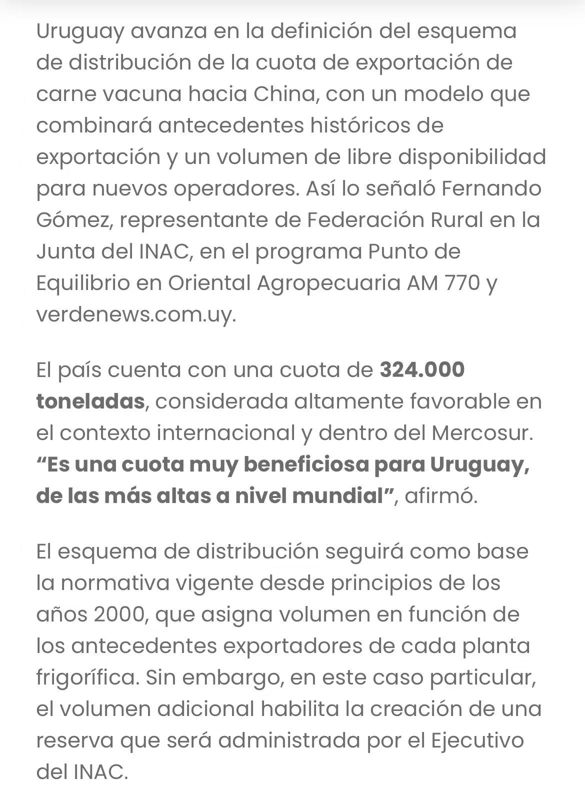 此外,乌拉圭国家肉类协会(INAC)明确:若企业被暂停对华出口资格超过90天,其原有配额将被收回并重新分配。目前被暂停的344厂(San Jacinto)即面临这一风险。