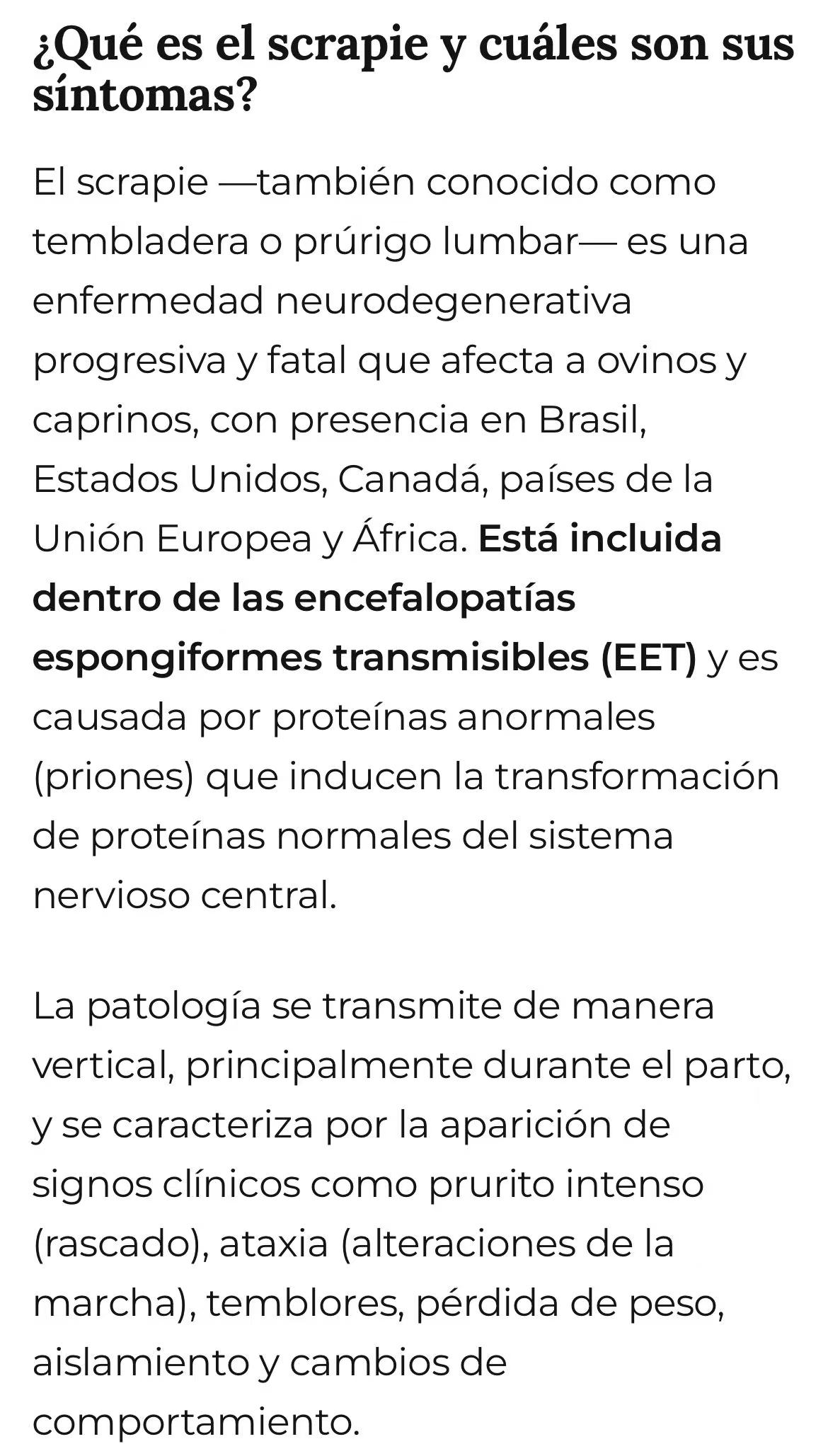 阿根廷国家农业食品质量与卫生局(Senasa)近日确认,在圣菲省和恩特雷里奥斯省的进口种用绵羊中检测出经典痒病(Scrapie)阳性病例。这是阿根廷首次报告该疫情。