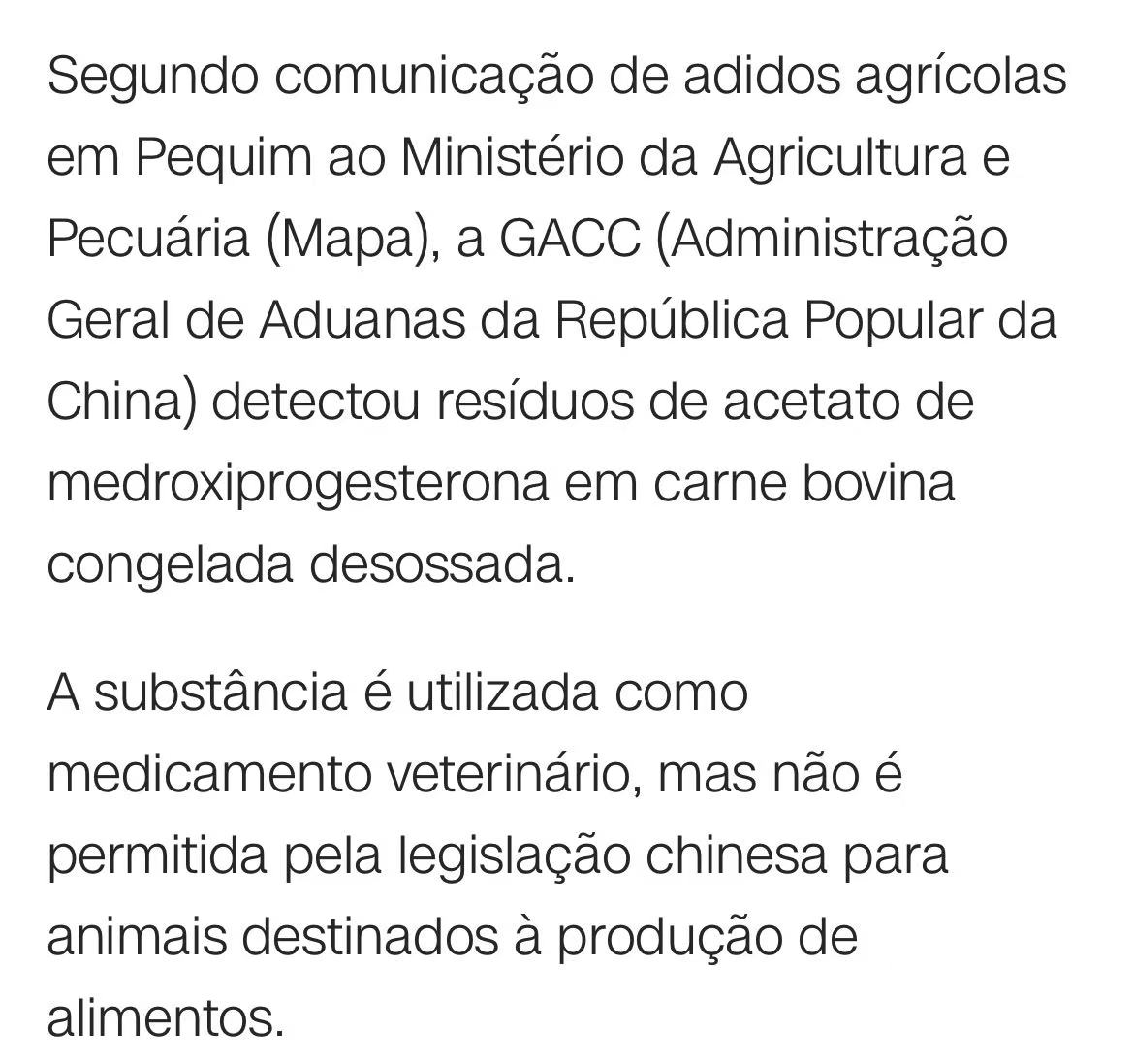 据外媒报道,此次暂停源于中国海关总署在SIF1206厂的一批冷冻去骨牛肉中检出醋酸甲羟孕酮残留。该物质虽用作兽药,但中国法律禁止在食品动物中使用。涉事货物已被销毁,中方要求巴方45天内调查并提交整改报告。