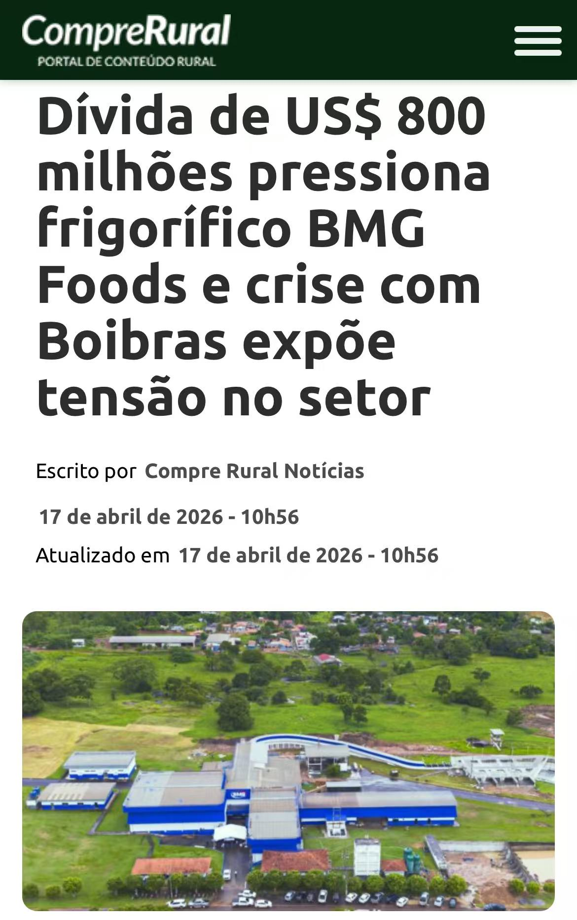与此同时,BMG Foods与处于司法重整期的Boibras(2782厂)爆发合同纠纷。Boibras指控BMG Foods未能履行每月1.2万头的送宰协议,拖欠服务费超1090万雷亚尔,并试图单方面以约1950万雷亚尔进行财务抵扣。南马托格罗索州法院已裁定暂停双方合同,允许2782厂另寻客户。
