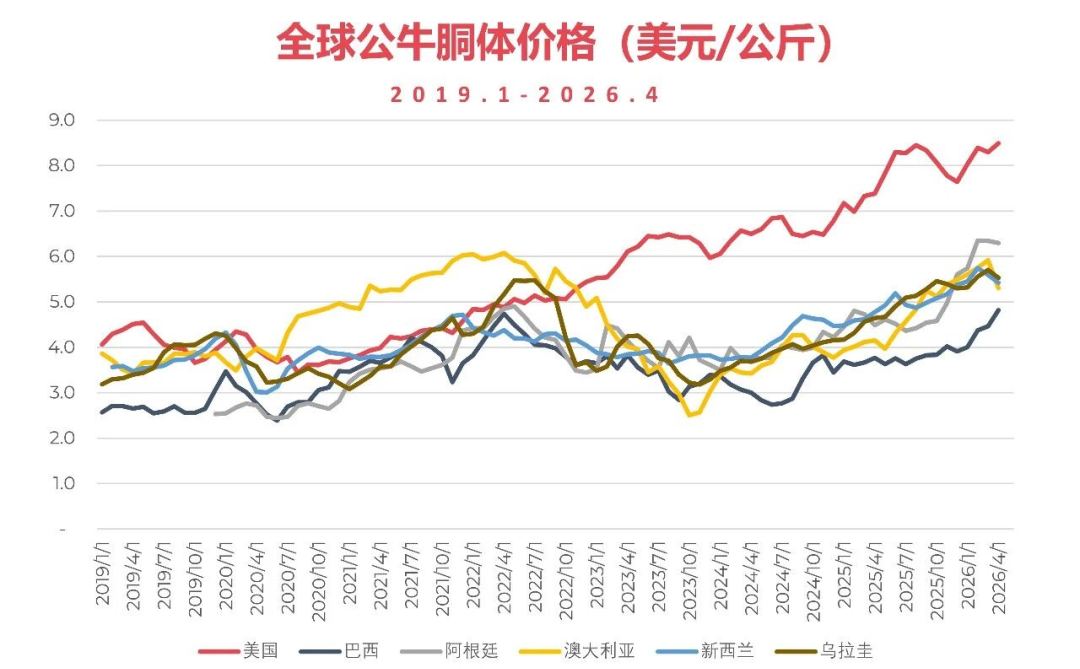 美国屠宰低迷叠加旺季需求持续上涨,牛价维持历史高位;